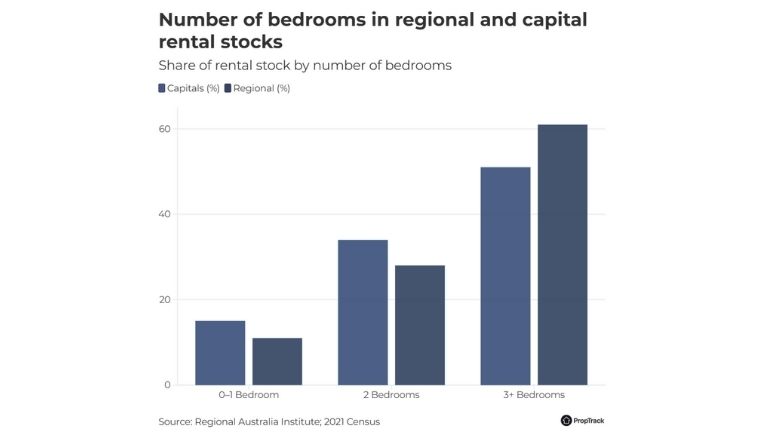 This disparity is even more pronounced in the rental market. In capital cities, nearly 50% of rental properties are one- or two-bedroom homes, while in regional areas, they account for less than 40%.