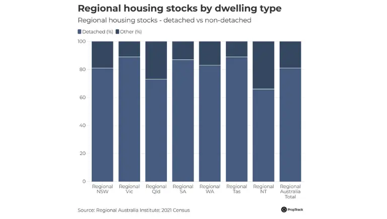 However, in most regional areas, there are very few apartments or townhouses to choose from. Most homes are detached houses, which make up 81% of housing in regional Australia.